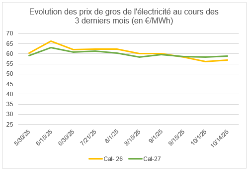 Prix de gros de l’électricité et du gaz naturel en septembre 2025